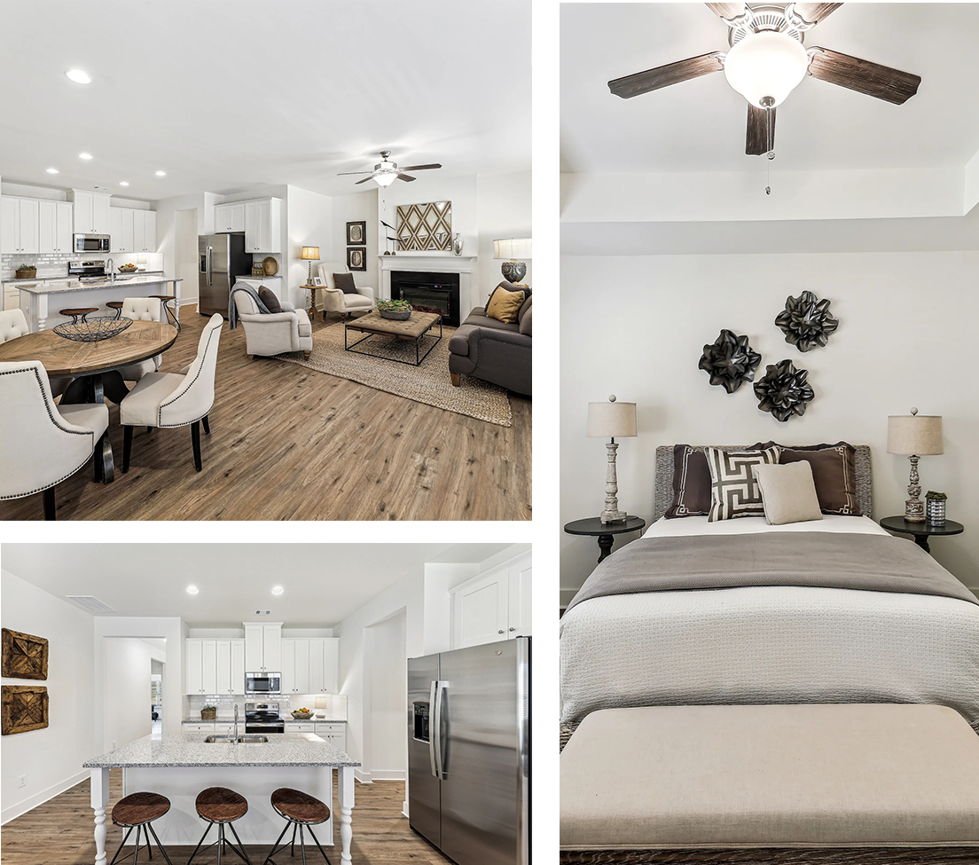 Discover elevated living with luxury-inspired homes offering 9-foot smooth ceilings, LVP flooring, stainless steel appliances, granite countertops with tile backsplashes, two-inch faux-wood blinds, decorative fireplaces with mantels, plus walk-in closets and spa-style baths—complete with garden tubs and walk-in showers. At the community level, enjoy a thoughtfully designed streetscape with sidewalks and street-lights, professionally landscaped and maintained yards, fully online rental payment options, and responsive management that keeps life effortless.
